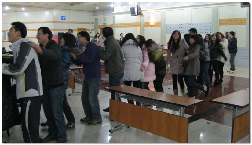 分区游戏结束后,各院研究生会主席发起集体兔子舞,现场的大部分同学都积极参与到了其中,在这欢快、有节奏的音乐下结束了本次的活动。至此,2011 “冬日相约”岁末七院狂欢取得圆满成功。