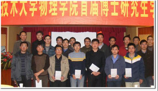 12月24日,物理学院2011年首届博士研究生学术年会,在庐江金海岸大酒店会议室隆重召开。本次学术年会由物理学院研究生部、分团委主办,物理学院研究生会承办。物理学院分党委副书记张增明以及周正威、易为、张一飞、崔宏斌、段昌奎等老师组成的评审团和来自物理学院各实验室的60余名博士研究生参加了本届学术年会。