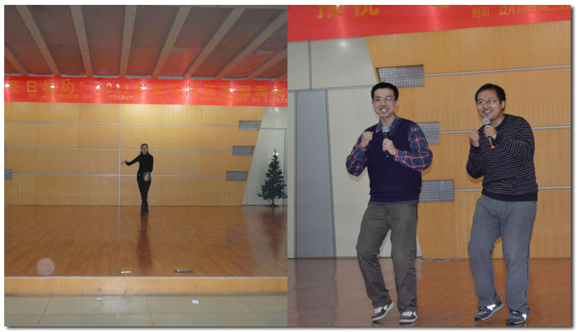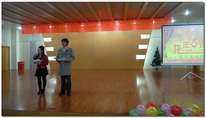 分区游戏结束后,各院研究生会主席发起集体兔子舞,现场的大部分同学都积极参与到了其中,在这欢快、有节奏的音乐下结束了本次的活动。至此,2011 “冬日相约”岁末七院狂欢取得圆满成功。