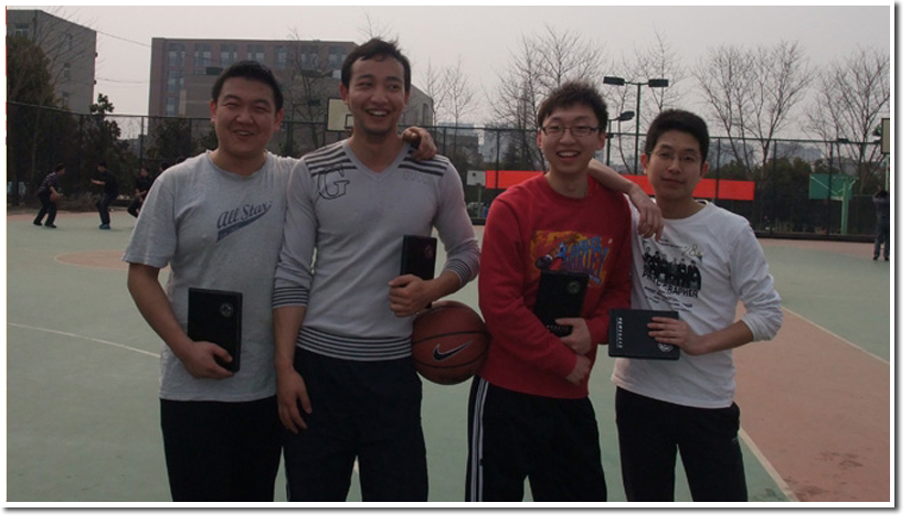 最后,工作人员为获奖队伍及参赛队员颁奖,冠军队伍共同分享一粒耐克篮球!随后所有人员合影留念。此时已到中午,而队员们仍意犹未尽,自行组织,打起了友谊赛。