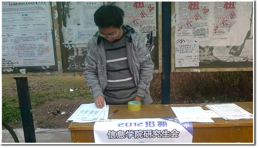 2012年春季学期伊始,信息学院研究生会根据工作的需要,开始全面策划招新活动。经过精心筹备,信息学院研究生会春季招新活动于2月17日正式拉开帷幕。