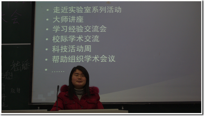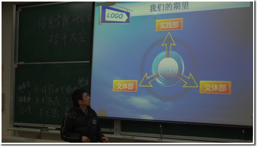 自我介绍后,各部长分别介绍了自己的部门,让新的部员们了解各部门的具体工作,方便各自的选择。