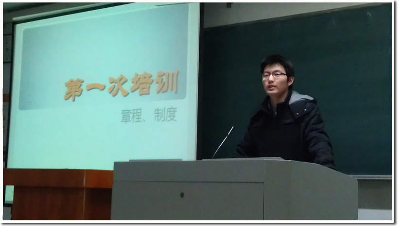 随后,常委郑钦文对大家进行了第一次培训,对校研究生会组织建设和规章制度等方面做了详细的介绍,让大家对校研究生会有了更深刻的了解。最后进入1小时的笔试环节。