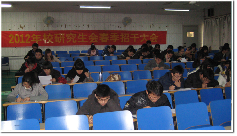 2012年2月25日下午,中国科学技术大学研究生会春季招干大会在东区2105教室举行。校研究生会主席贺承浩、副主席刘少辰、常委郑钦文以及各部长均出席了此次招干大会。招干大会由春季招干项目负责人瞿永飞主持。