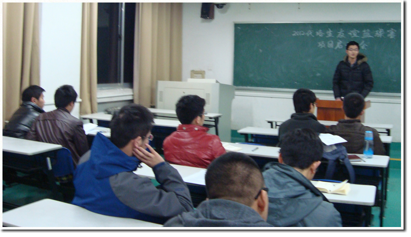 3月23日晚上,2012“科大•温馨家园”代培生友谊篮球赛项目启动会在3303教室顺利召开,校研究生会常委郑钦文、代培生工作部部长江晓悟、项目组全体成员参加了本次会议,会议由项目负责人张继超主持。