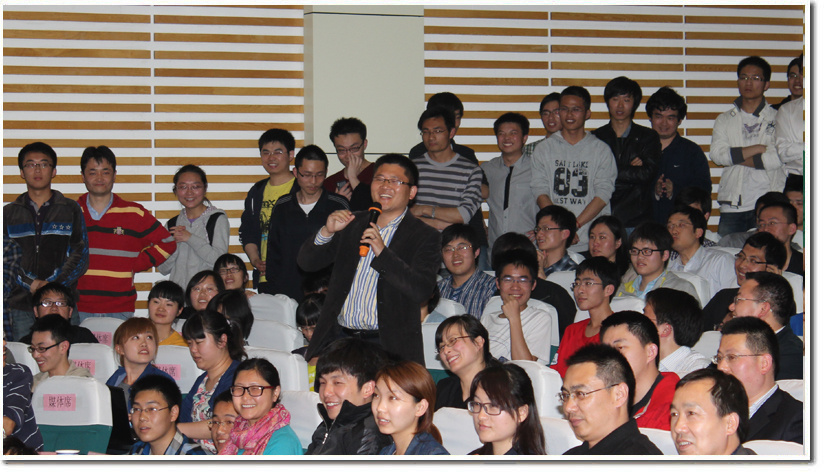 2012年4月11日晚,在东区理化大楼东三报告厅,联想集团创始人、联想控股董事长、中国著名企业家柳传志先生做客本期复兴论坛,与现场近八百名师生分享奋斗经历与创业体会,畅谈智慧人生。校党委副书记鹿明等领导出席了本次活动。联想控股及子公司的嘉宾朋友、中国科大的部分校友也来到了活动现场,近千名感兴趣师生通过网络直播观看了访谈。