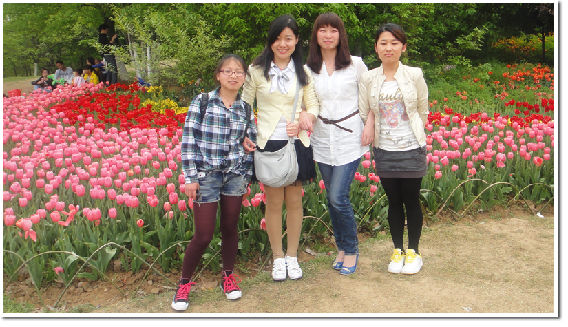 一大早,同学们踏着明媚的春光,结伴来到植物园。进入植物园,同学们就被那芬芳开遍的郁金香所吸引,不住的流连观赏,并纷纷拿出自己的相机拍照合影留念。瞧,这一群姑娘小伙笑靥如花的样子,是不是也感染了你,让你想要一亲大自然的芳泽了。