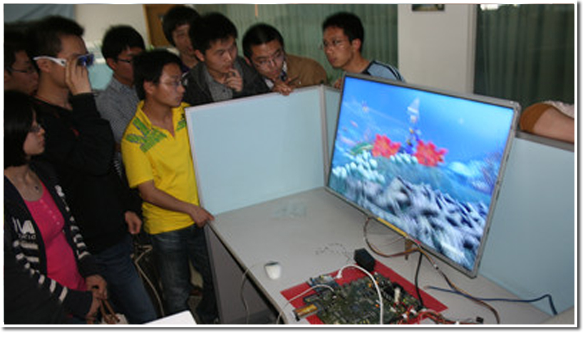 下午14:30分,同学们乘车到达联发科技(合肥)有限公司,在工作人员的带领下,同学们首先来到汽车电子开发部和蓝光DVD开发部等工作区域进行参观,工程师向同学们展示了汽车导航技术和3D蓝光DVD技术等最新研发成果,同学们兴趣浓厚,在体验最新成果的同时与研发工程师讨论其研发过程及应用前景。