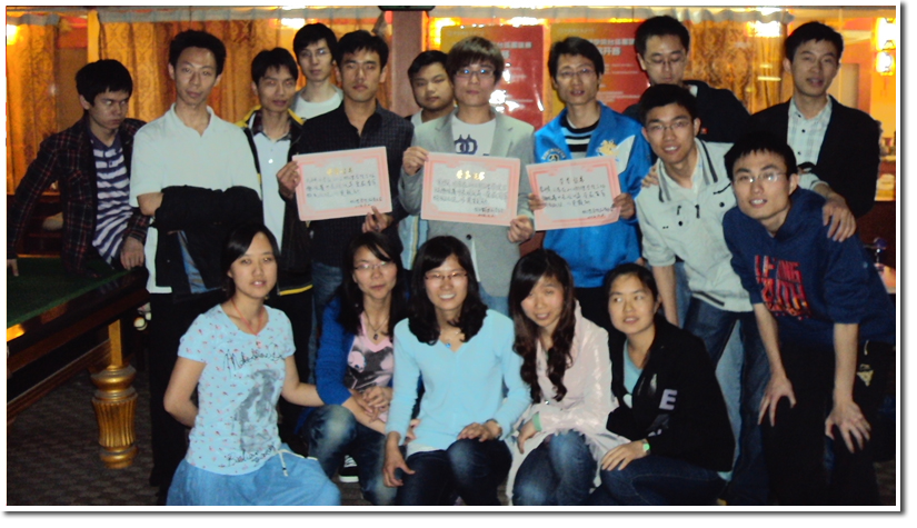 2012年4月21日上午九点整,由物理学院分团委主办,物理学院研究生会承办的“2012物理学院台球趣味赛”在壹海家常菜台球城成功举办。