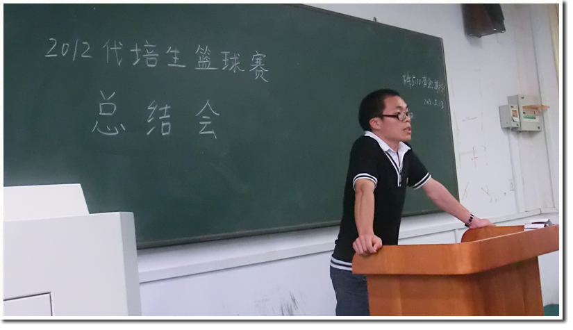 5月12日下午,2012“科大•温馨家园”代培生友谊篮球赛总结会在3303教室召开,校研究生会副主席杨树、代培生工作部部长江晓悟以及项目组全体参加了本次会议,会议由项目负责人张继超主持。