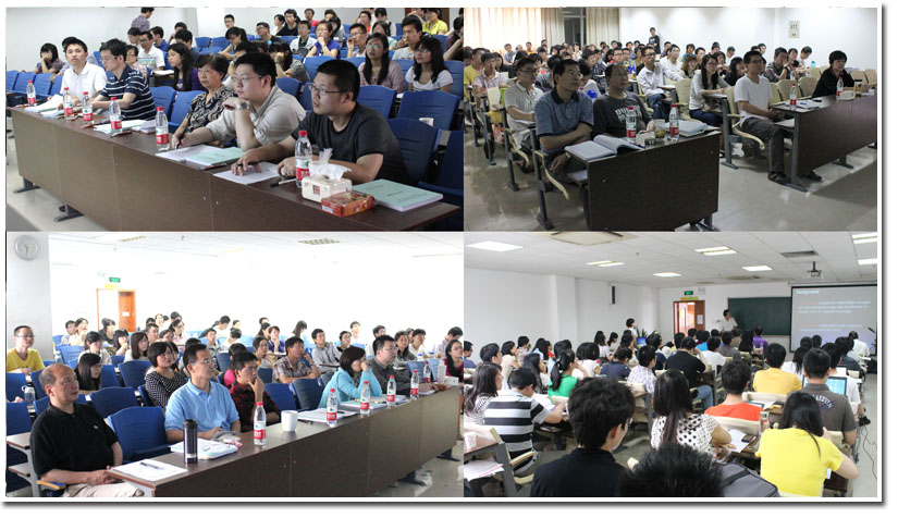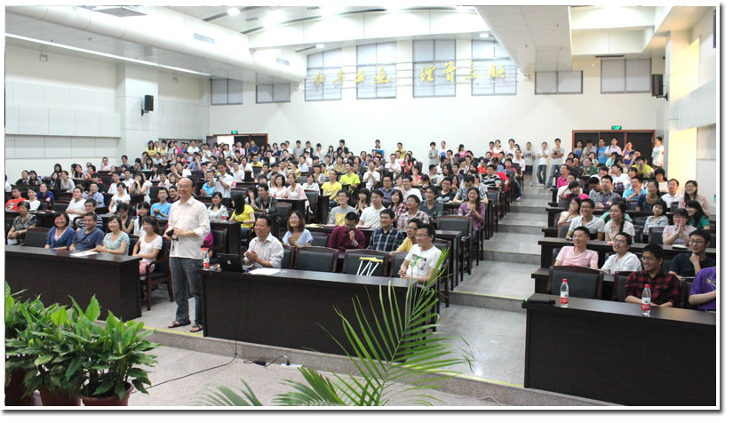 5月26日上午,在生命学院一楼礼堂进行的大会报告成功的揭开了本届年会口头报告的帷幕,今年的大会报告与以往不同,改变了以往教授做报告的模式,而是由四位科研工作非常出色并发表了高影响因子文章的研究生汇报,分别是滕脉坤实验室的陶余勇同学、吴缅实验室的初波同学、王均实验室的杨显珠同学和魏海明实验室的傅斌清同学,并由施蕴渝院士向全场师生致大会报告开幕词,整个现场座无虚席。