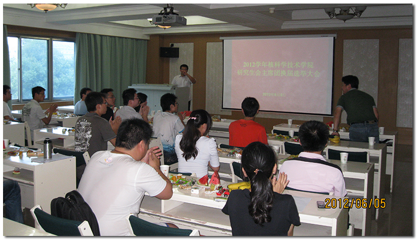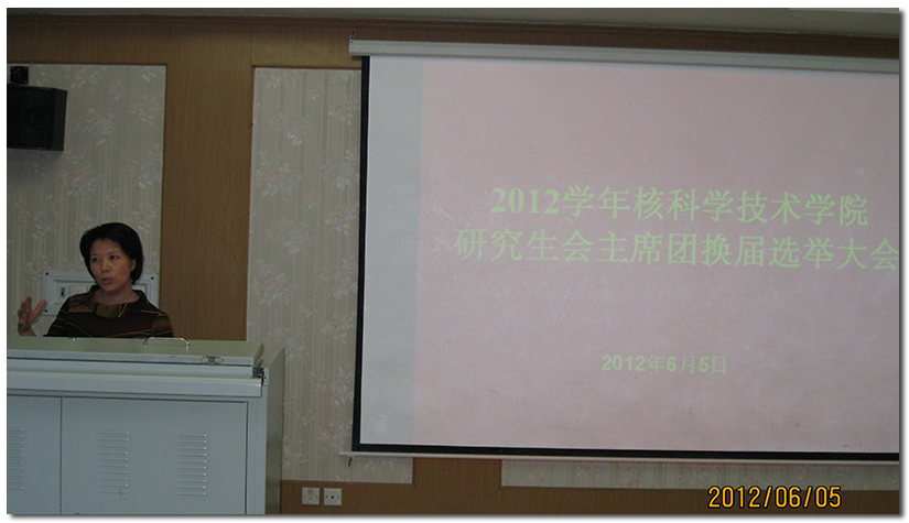 6月5日下午,核科学技术学院研究生会换届选举在国家同步辐射实验室3号楼210会议室隆重举行。核学院党委副书记丁翠平,团总支书记宫晓梅,班主任席金秀、方智勇老师,校研究生会常委王艳、王庆博,各兄弟院系研究生会主席和代表,核学院学生会主席赵乐,以及核学院研究生会全体成员参加了会议。