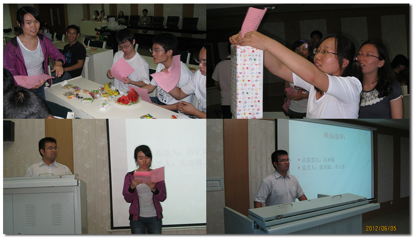大会秉承公开、公平,公正的原则进行民主投票选举,最后全票通过产生新一届主席团:主席:龚晓冬;副主席:胡聪、杨洪、李伟伟。