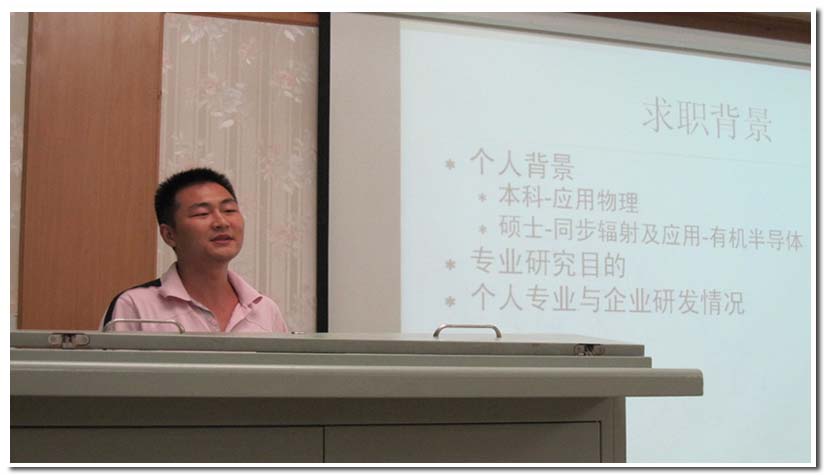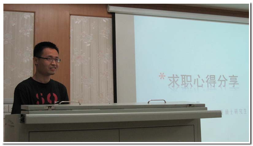接下来,09级硕博班班长万力详细的介绍了毕业班同学的就业单位。同学们在认真关注之余,慎重地思考并讨论起来。虽然当今就业形势严峻,前辈们的就业去向还是给大家带来了憧憬和信心,为同学们立榜样、导方向。接着,万力结合自身经历,讲述了核学院毕业生可以考虑的求职方向,求职工具以及求职岗位,建议同学们充分利用手中资源,用心去找一份适合自己的工作。