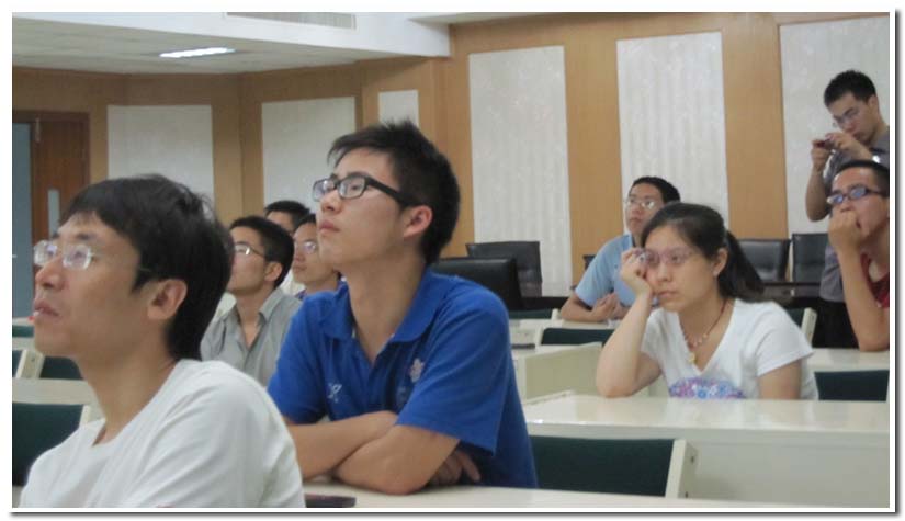 然后是方文政师兄带来的报告,他也是中科院院长奖的候选人,介绍了做多学科交叉课题的经验。整个报告内容翔实,引人入胜,介绍了他做科研时遇到的困难及克服的经过,并重点突出了做科研的经验和写文章的要点。经此,同学们了解到如何把握国内外的研究动态,如何定位一篇学术论文的水平以及如何写出质量更高的文章。同学们听得津津有味。