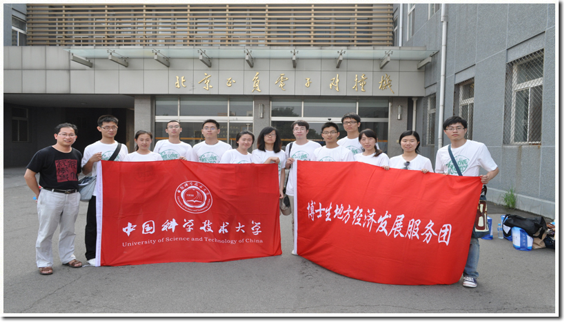 7月9日至7月15日,中国科学技术大学2012年博士生地方经济发展服务团(以下简称博士生团)前往北京市进行为期一周的社会实践活动,7月16日全体成员安全抵达学校。