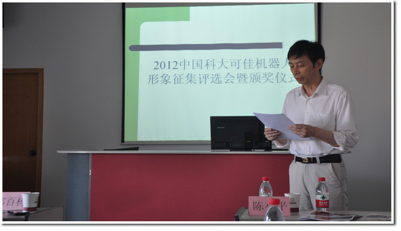 7月26日上午9:30,2012中国科大“可佳”机器人形象评选会暨颁奖仪式在中国科大西区计算机学院学术报告厅顺利举行。中国科大人文学院兼职教授郁百杨导演,学生工作部董雨处长,校团委书记杨正以及计算机学院副院长许胤龙教授等作为评委嘉宾出席了本次评选会。本次评选会由计算机学院陈小平教授主持。