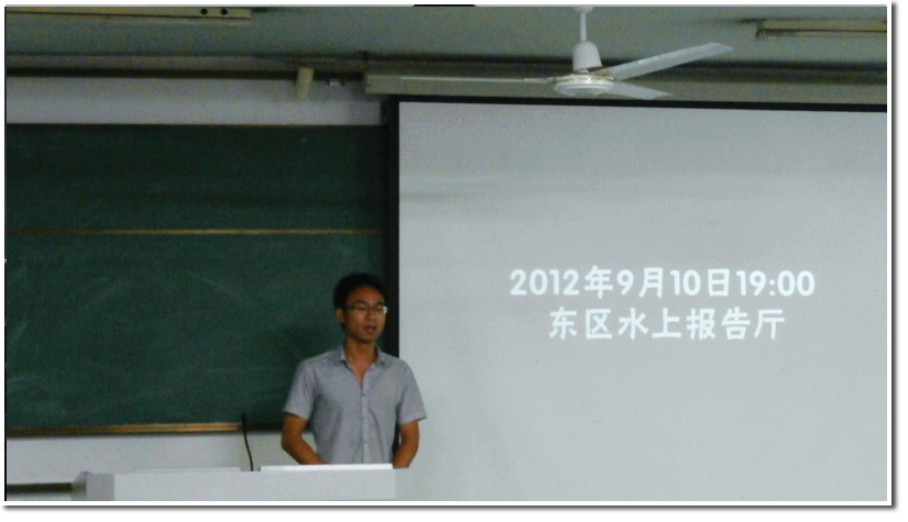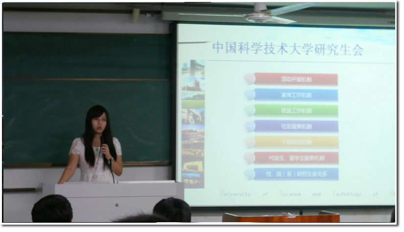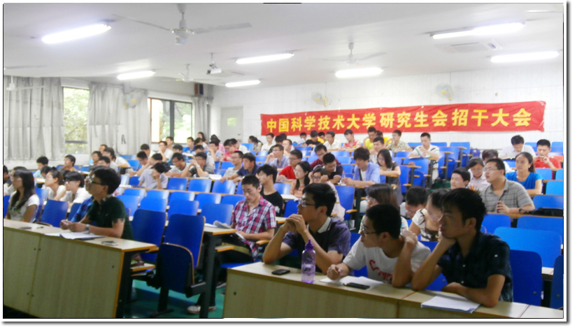 2012年9月8日上午,中国科学技术大学研究生会秋季招干大会在东区2106教室举行。校研究生会副主席杨树、部分常委、常委会助理及各部长均出席了此次招干大会。招干大会项目组成员惠聪主持。