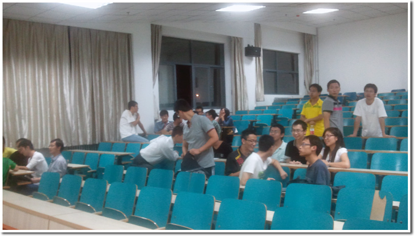 经过介绍与提问环节,大会进入令人激动的无领导小组讨论环节。在讨论中,研究生会新同学被分配到若干小组中,每个小组9人。组织者拿出精心准备的题目,小组从中选择他们关注点所落脚的话题。每一个小组的同学都踊跃的阐述自己的观点,整个过程同学们积极性被充分调动,讨论既和谐又精彩。整个教室中充满了思想的碰撞。