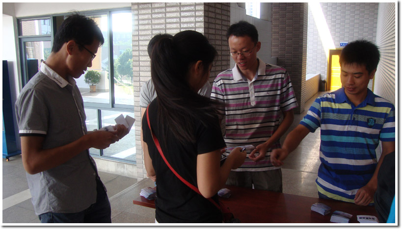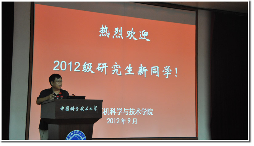 2012年9月5日上午九点,中国科学技术大学计算机学院2012级研究生迎新大会在西校区活动中心大礼堂顺利举行。学院研究生会成员特别制作卡贴赠与到场的研究生新生。