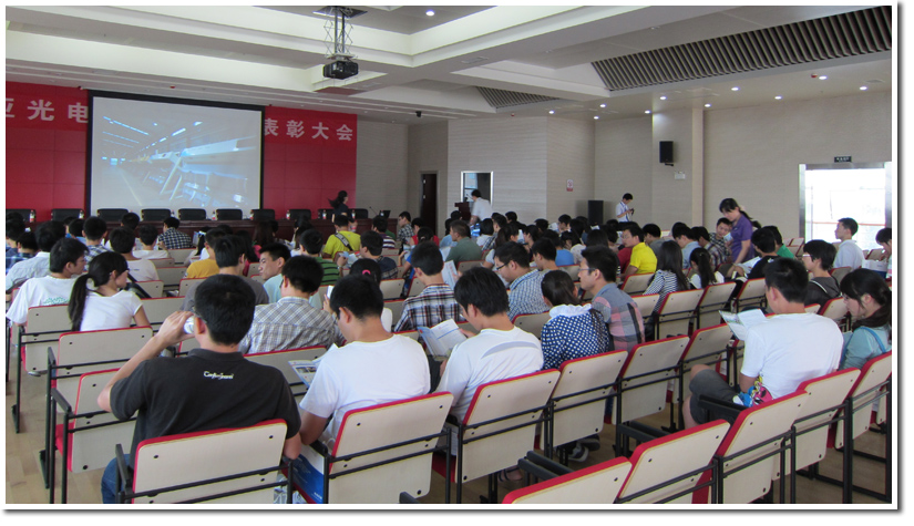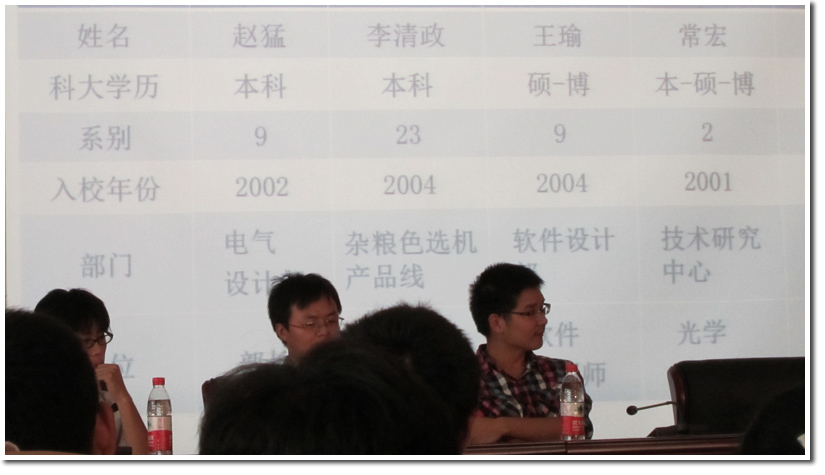首先由总经理林茂先企业发展和近几年取得的成绩做了详细介绍,然后是由科大师兄、研究所副所长着重介绍了美亚光电的科研实力,并表达了对科大毕业生的渴望。最后由董事长田明阐述企业文化,描绘了企业的发展蓝图。