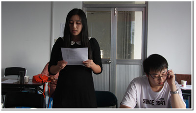 随后,校研究生会常委王岩对上一届代培生委员会的工作进行了汇报,展示了上届代委会所举办的多姿多彩、形式多样的活动,并表示对新一届代委会的工作充满期望。