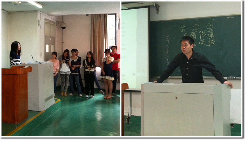 9月22日上午在东区2105教室,全体培训学员随机分为5组,并对五个题目进行无领导小组讨论,在25分钟的讨论后,题目相同的两组先后上台进行15分钟的答辩,之后组间进行3分钟的互动提问环节。整个过程中,新干部积极踊跃的参加组内讨论,分别提出了各自的观点,经过最后的磨合最终形成了本小组的最终意见并上台答辩,这个过程中学员们分别展现了个人的组织协调能力、口头表达能力、辩论能力以及组内的团结互助。最后,常委王燕南进行了总体点评,强调无领导小组讨论是为了进一步加深之间的相互了解,同时锻炼大家的表达理解能力以及是否能够团结其他同学等,并提出希望大家以后继续坚持参加后续的培训活动。