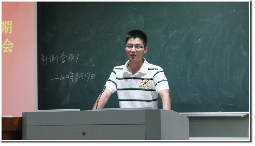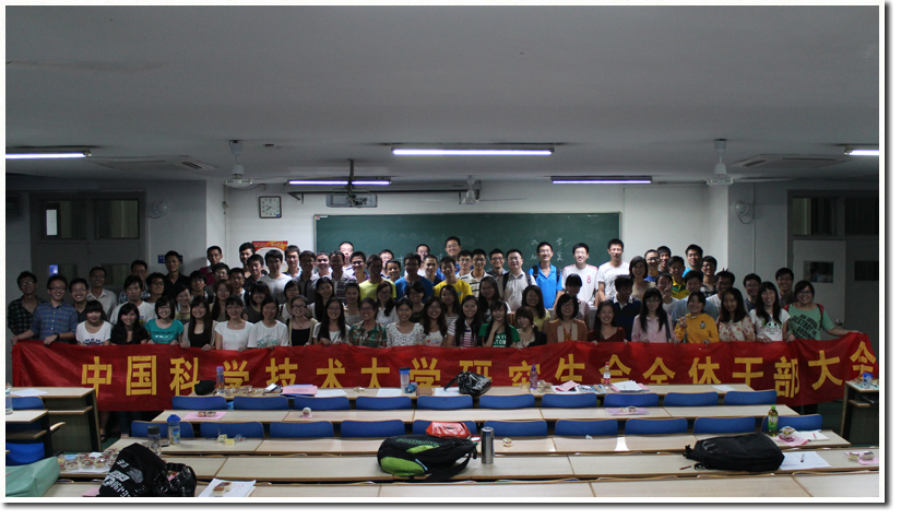 9月27日,在东区2105教室,召开了校研究生会本学期第一次全体干部大会。会议由综合办公室主任王寻璕主持。会议首先播放了刘少辰主席来自甘肃的问候录像,主席表示了对新干部的欢迎,并提出了对刚加入校研究生会的新干部的要求,希望新干部能够戒骄戒躁,能够尽快融入校研究生会的集体中,为组织建设和活动开展添砖加瓦。随后校研究生会副主席郑钦文做了2012-2013学年第一学期研究生会工作展望。接着,部长为每个部门的新干部颁发了校研究生会录取通知书并分发了月饼,表达了对中秋节即将到来的祝福。最后,各部门的全体新老干部合影留念。