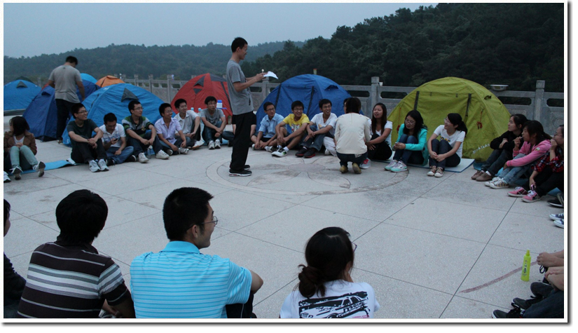 9月22日下午两点,同学们于西活集合,并依序把帐篷、背包、睡袋等行李带上车,踏上了前往紫蓬山的路途。一路上,同学们在男女两名主持人的带领下,相互介绍,相互认识,并玩起了真心话大冒险等小游戏。同学们由陌生到渐渐熟悉,感情渐渐加深。