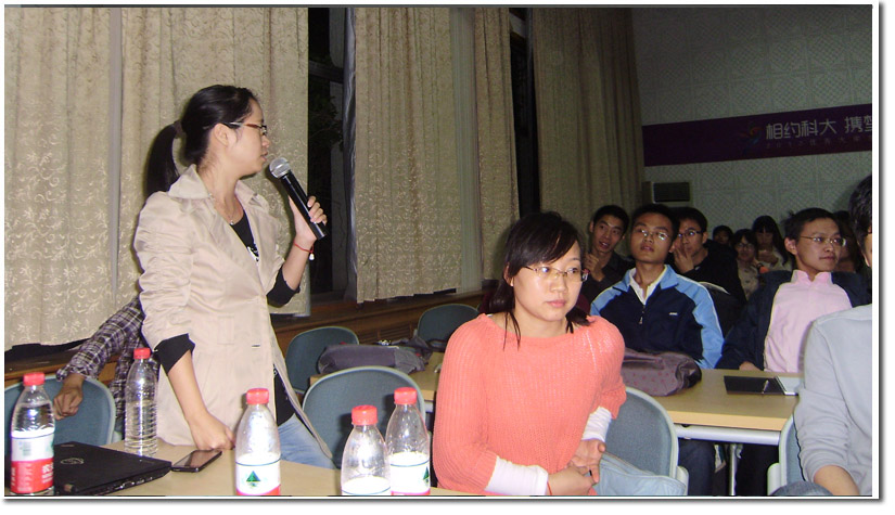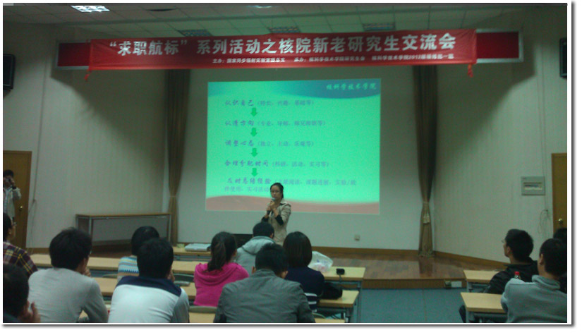 最后,08级硕博班的彭彦华学姐根据自己的亲身经历对研究生期间的生活学习和未来的职业规划等方面提出了一些看法,并真诚地对新生们表达了鼓励和祝愿。