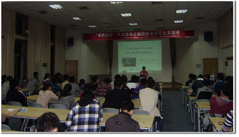 首先,来自同步辐射应用方向的2010级博士生的张亮学长首先分享了一下自己的学习和科研心得,向同学们提供了一些信息检索和阅读文献方面的方法。