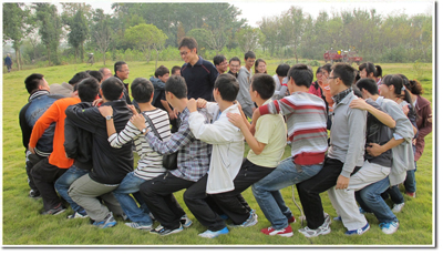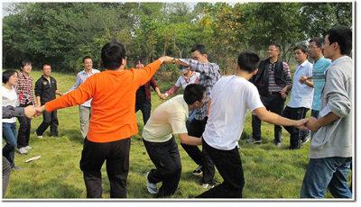 最后一个游戏“心锁相连”使得大家有了更多的团体意识与主人翁意识。经过坚持不放弃的努力,当看到一个个锁环被顺利解开,大家体会到了信任和团队的力量。