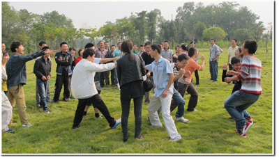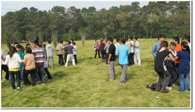 初至科学岛,在刘畅同学的带领下,趣味盎然的素质拓展迅速展开。简单的热身游戏很快便营造了一个欢乐亲切的气氛。