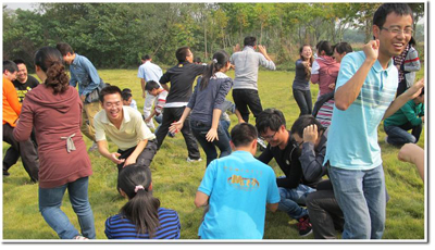 随后的“进化论”项目中,全组人员模仿“生物进化”过程,欢声笑语将素质拓展推向了高潮。