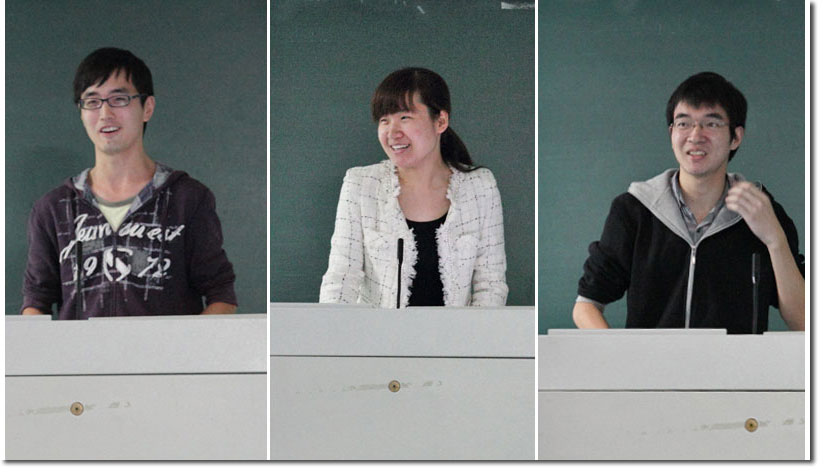 接着,项目负责人杨金晖介绍了项目进行到目前的总体进展情况。分别对各职能小组的前期工作进行了简短的总结,肯定组员工作,也提出了后期工作中需要注意的问题。例如,策划组应提前到现场调试灯光、主持人表演嘉宾的出场顺序问题、宣传组应注意后期工作中宣传网络抢票的时限问题、外联组需要注意跟各个协办高校联席的问题等。