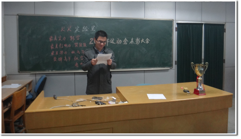10月31日晚上,火灾实验室运动会表彰大会在西校区力一楼圆满举行。火灾实验室团总支书记祝玉泉老
