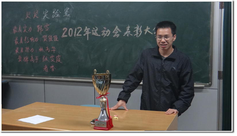 首先,实验室研究生会主席丁超布了火灾实验室在本届校运会的获奖情况,包括奖牌得主及每位运动员