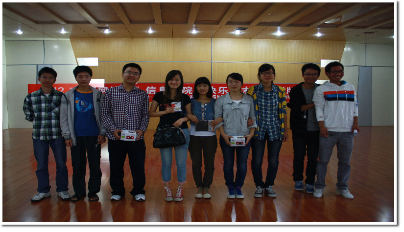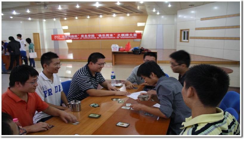2012年10月14日上午,“锐捷网络杯”信息学院“快乐周末”之棋牌大赛在科大西区活动中心三楼多功能厅成功举行。来自全校不同专业的同学参加了此次棋牌大赛。在紧张激烈的角逐之后,各比赛项目都分别产生了该组的优胜者,并收获了由主办方提供的战利品。