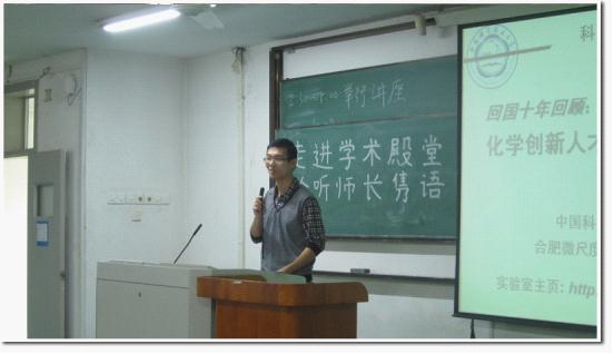 在俞书宏老师的精彩演讲后,三位优秀的学长冉瑾、葛进、贺晨分别介绍了自己在科研中的经验与自己对于做科研做学问的看法,使在座的同学获益匪浅。其中贺晨师兄通过引用王国维先生对于成大学问必经的三大境界,生动形象地把自己对于科研的看法介绍给师弟师妹们,让在座的师弟师妹们对自己未来的科研之路产生了深刻的思考。