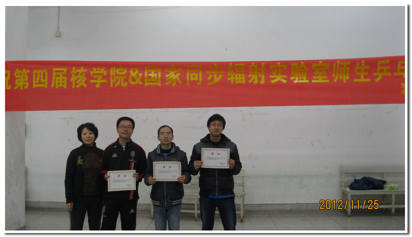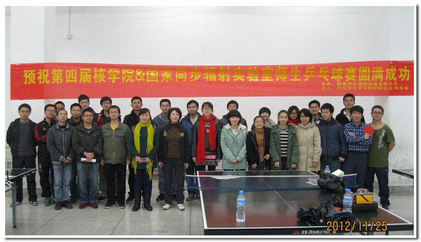 11月25日上午8点,在西区活动中心体育室里,核科学技术学院&国家同步辐射实验室举办的“爱乒才会赢”乒乓球比赛拉开了帷幕。虽然当天下着蒙蒙细雨,但是老师们和同学们依然热情高涨。比赛本着公平、公正、公开的原则进行,气氛十分活跃,竞争也十分激烈。