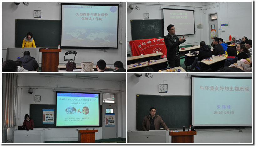 12月8日上午,计算机学院和人文学院分别举办了“人工智能机器人”和“九型人格与职业成长”沙龙;下午,公共事务学院举办了“知识产权与科技创新”沙龙。12月9日上午,火灾实验室和工程学院分别举办了“人员疏散演示”和“与环境友好的生物质能源”沙龙;下午,信息学院举办了“学术与科研经验交流”沙龙。各讲座气氛火爆,同学们认真学习讲座内容,并与老师进行了热烈的学术互动交流。