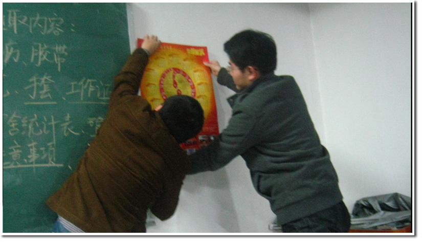 最后石宇常委和邹峰组长一起张贴2013年的第一份年历,为大家送上了新年的第一份祝福。