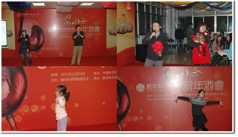 12月28日,数学科学学院2013新年酒会在东活三楼隆重举行。学院领导、老师和全体研究生约160人热情参与了本次联欢,全体师生共度了一个和谐温馨的夜晚。