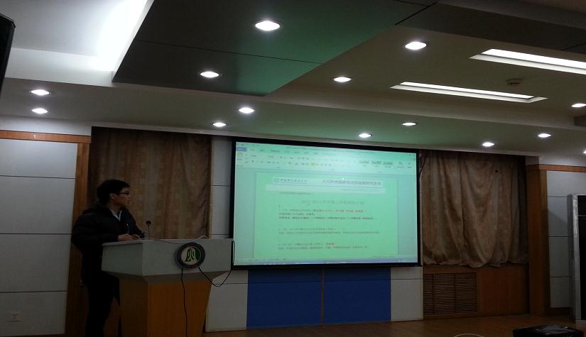 然后,会议进行了经验分享的部分。由实验室研究生会的干部对前段时候的工作、生活和科研的经验进行了总结和分享。首先,由吴志博、傅立碧分别对元旦晚会和一二九合唱比赛进行的工作总结,分析工作的得与失。然后,付阳阳和张阳树跟大家分享了时间管理的经验,教大家如何在方法和实践两方面进行有效的时间管理。最后,胡郡郡分享了她参加龙井河拉练和上海马拉松赛的经历,让大家懂得了运动的快乐和坚持的真义。