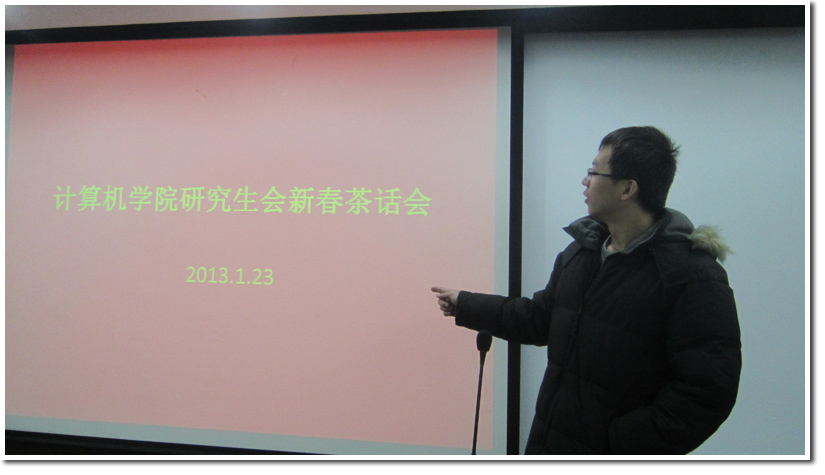2013年1月23日,计算机学院研究生会新春茶话会在东区高性能中心会议室顺利召开。计算机学院研究生会全体成员参加了本次联欢,大家共度了一个温馨欢快的夜晚。