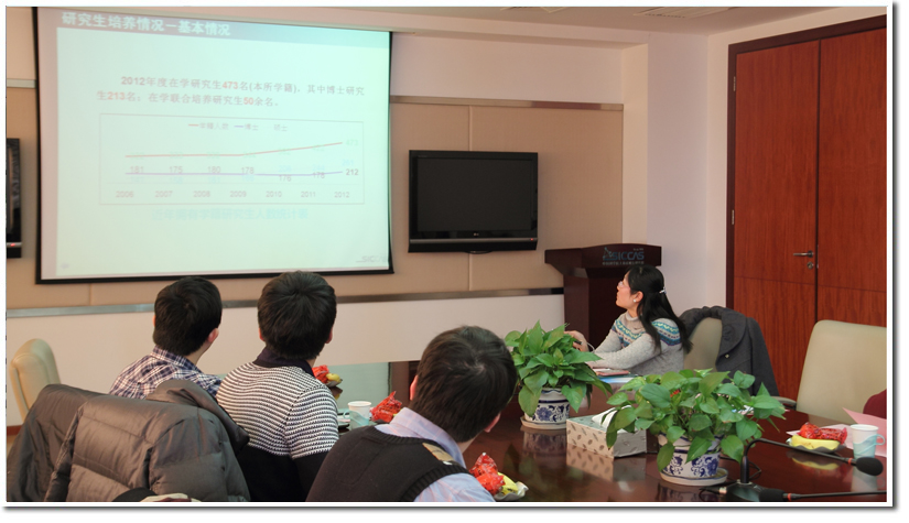 2月20日,由我校研究生会和代培生委员会组成的2013年“所系结合”上海交流团(以下简称“交流团”)来到上海硅酸盐研究所(以下简称“上硅所”)开展学术交流活动。上硅所研究生部陆彩飞老师代表上硅所亲切接见交流团并主持本次交流活动。