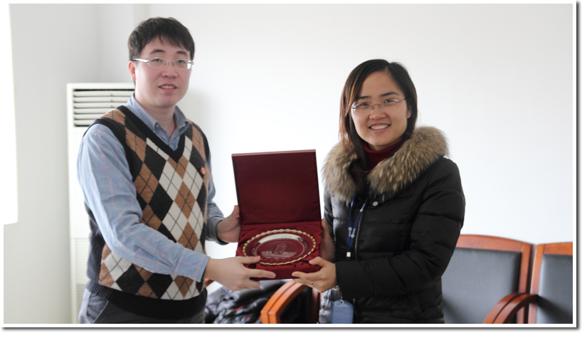 下午,交流团来到上海应用物理研究所,与应物所的老师和同学们进行了座谈交流。首先应物所的钟老师向交流团同学介绍了应物所的的科研队伍、研究方向等内容。交流团在与应物所老师同学的交流过程中,了解到应物所有完善的心理教育措施,以及每年会做新生手册留给下一届,交流团同学表示这些都是对于培养学生的有利措施。应物所老师同学也表示交流团的到来对于促进双方交流很有帮助。最后应物所与交流团同学互换了纪念品,并对我校交流团的再次来访表示了热烈的欢迎。