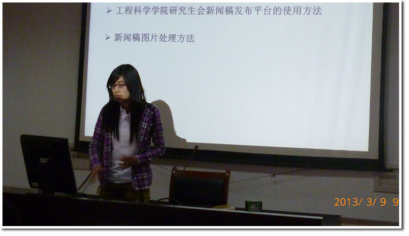 然后,工院研会副主席邸越为新干部详解了关于如何撰写新闻稿、图片的处理以及BBS的发布等问题。