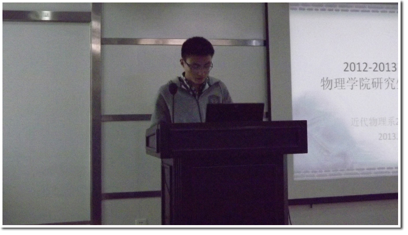 接下来由校研会常委屈直同学致词,他说自己也是从物理学院研究生会走出的,表示物理学院研究生会体制完善,运作规范,并对我院的工作给予了肯定。