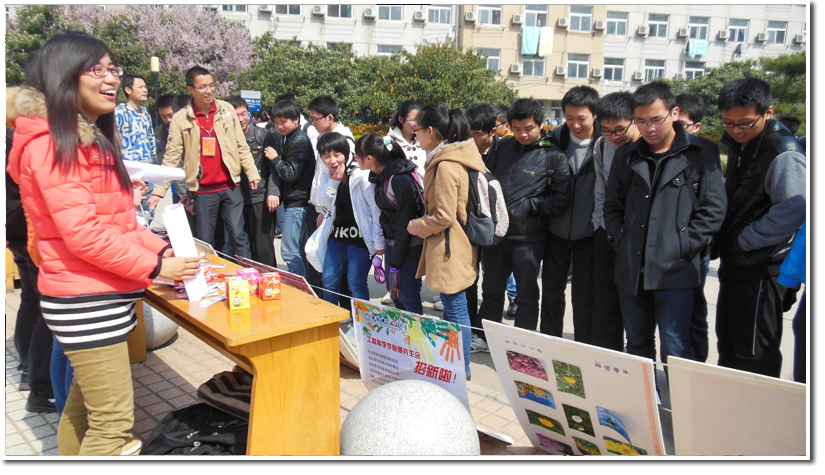 十一点左右活动开始,同学们积极参与到我们的现场活动中来,女生们对这种竞猜模式的有奖问答表现了很高的兴趣。参与活动的女生有的随口说出了答案,有的经由我们工作人员的引导,认真的思考着答案。